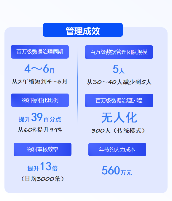 “中煤靈鏡供應鏈大模型”破解了物料、商品、價格數字化難題,顛覆了傳統數據治理與管控的方式。“識物靈鏡”模型短時間快速完成330萬物料和260萬商品的數據治理,物料標準化比例提升39%,物料審核效率提升13倍,節約數據治理成本超過千萬元。“靈鏡智衡”價格模型覆蓋88%物料,賦能采購價格管控。 “靈鏡智答”模型輔助員工查詢制度效率大幅提升,充分彰顯管理創新效能。